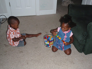 So usually when we have class, I try to give my little one’s special toys to play with. Some days that goes great and others not so great. Today was a good day! They sat and played with their counters! It was a great morning!