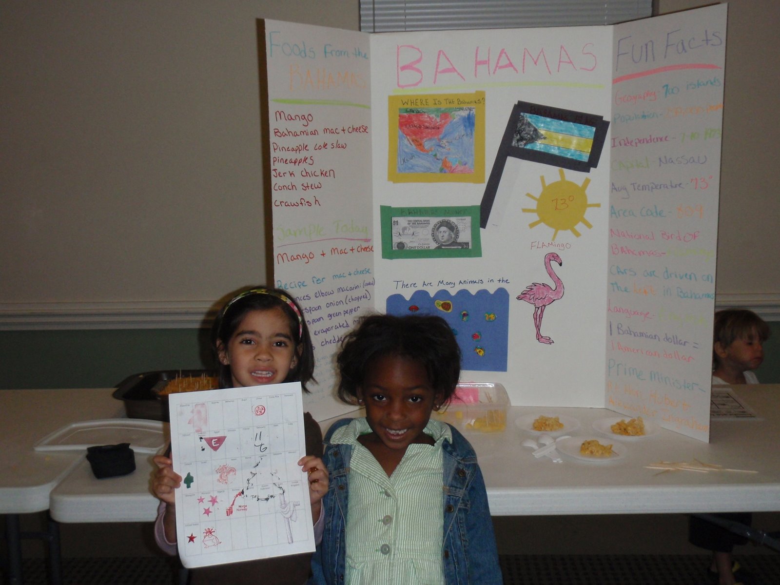 We had such great time participating in the international fair and learning about all the great countries. I am sure Jay favorite thing was tasting all the food! Everybody really had some great food. We had Bahamian Mac and Cheese and Mango!