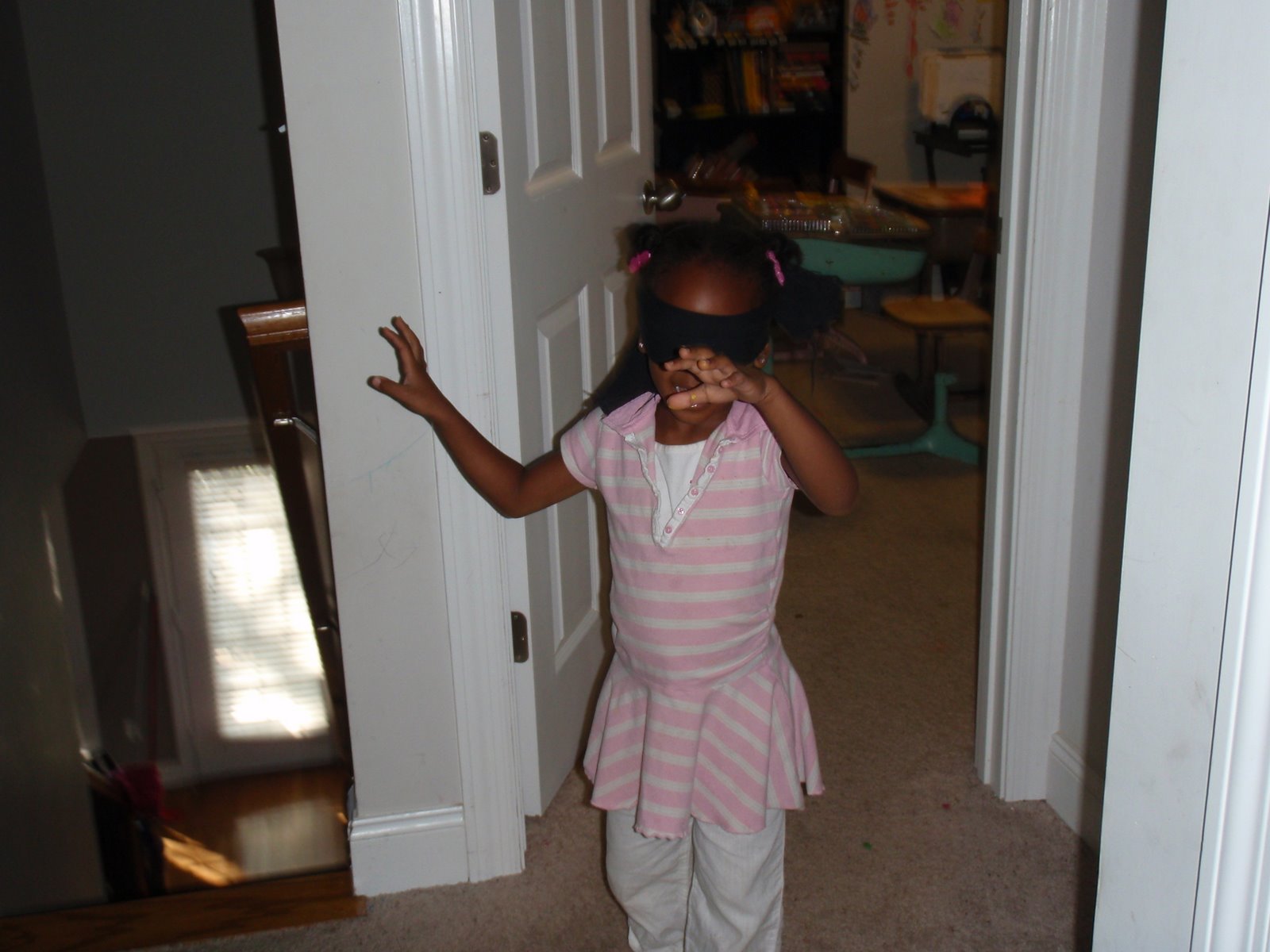 we have finally purchased my fathers world, thanks to a friend of ours! We eagerly jumped right into this week and started learning about the sun! This is Jay doing her blindfold portion. We talked about how the Sun helps us to see. She was so excited and did this exercise 3 times!