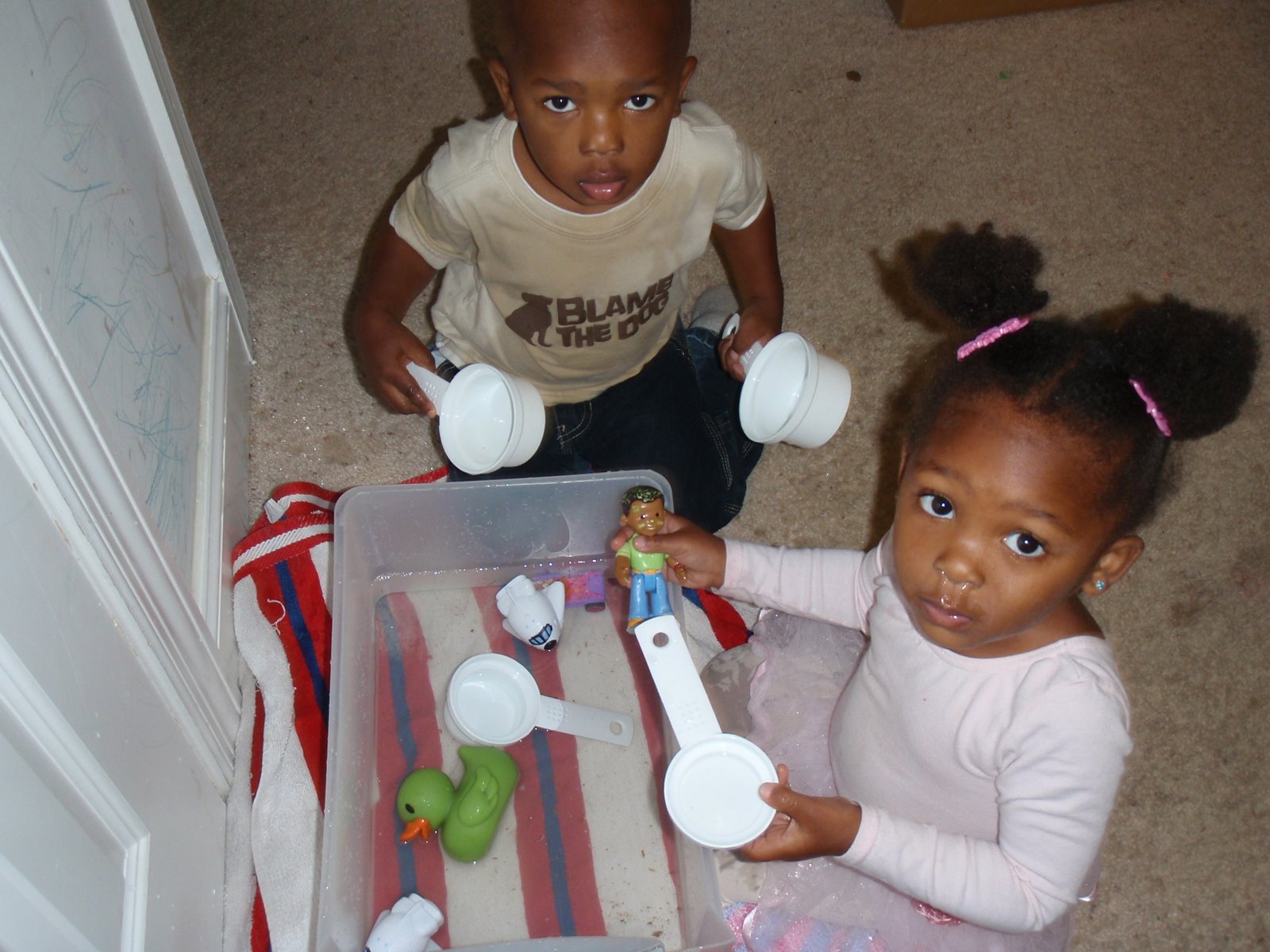 Here are my little ones playing away in their bucket of water! They loved it! I am amazed. I didn’t think that having organized fun, would be this great! So this week we played with play doh, water, sand, scissors, and of course Friday was Halloween! looking forward to next week!