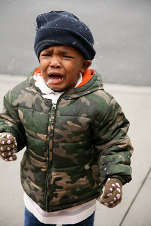 CB crying after being hit with a snowball! Daddy holding his snow man mad by bossy