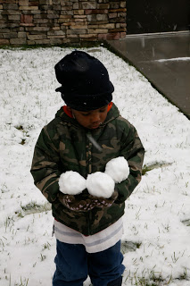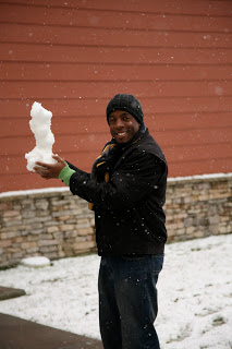 CB holding all the snowballs Bossy making a snowman