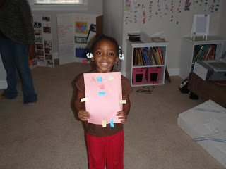 Once she finished making her picture she had to dictate a story about her picture. So here is her story about Sally. Once upon a time, Sally went to play outside. She heard someone walking and he said, “hello” and she said, “hello” back. They became friends and played outside, then sooner or later the mommy came and she said, “who is your new friend you are playing with Sally?” Sally said, “this is John.” Then an Indian came and said may I have some food. The end!