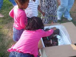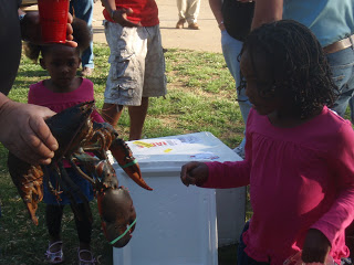 We had the children with us so I figured hey you got to turn this into a teaching moment! So that’s what we did. I mean here I was 29 and had never seen a lobster cooked before, so how great it is that my children will get to experience this feat at their young ages! Here is Ms. Bossy and Princess being introduce to the live lobster! Bossy of course was not afraid, princess on the other hand wasn’t so sure.