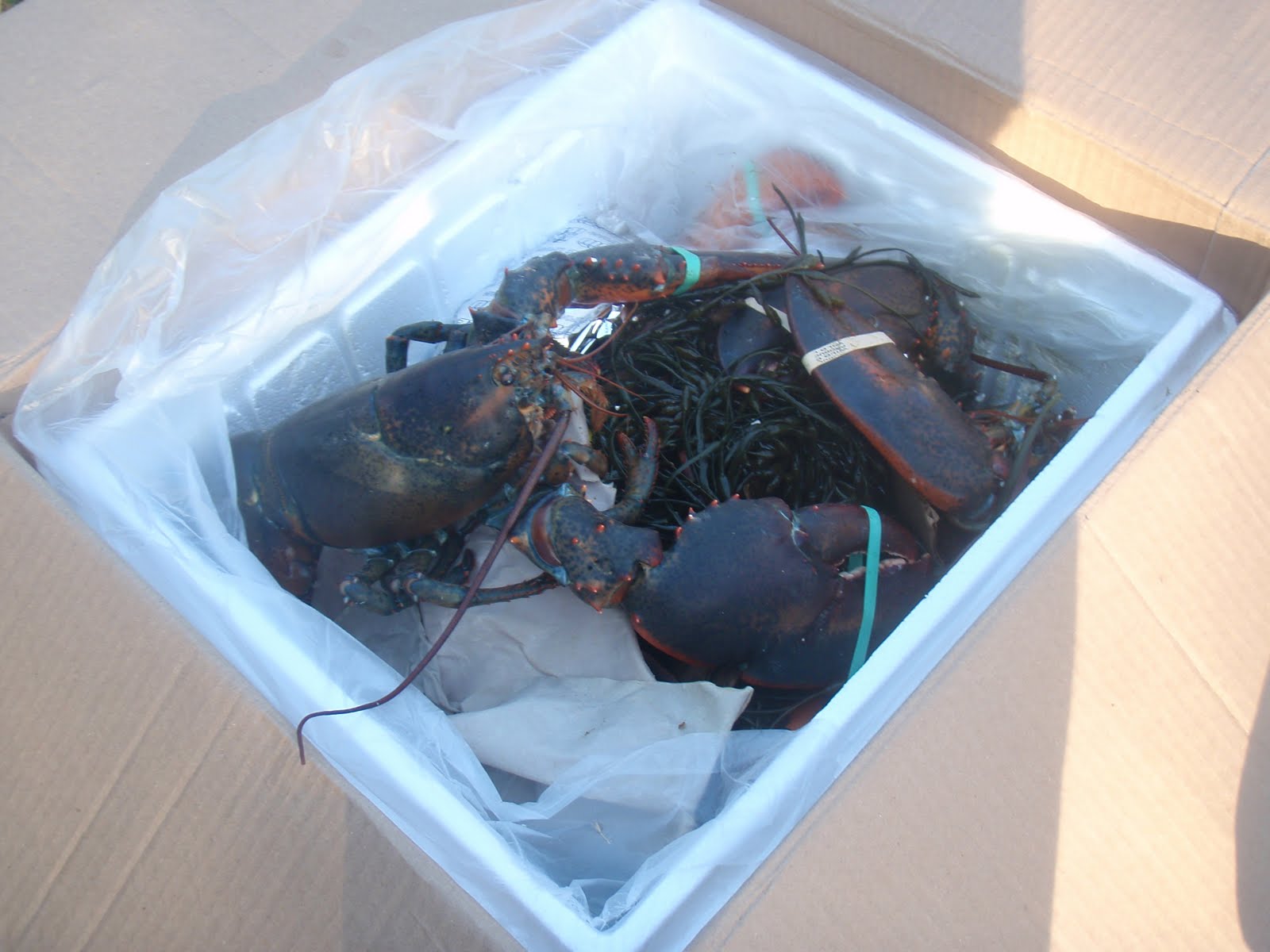 I had stated in my last blog that we went haywire on our veggie quest our first weekend in lieu of steak and lobster! I mean who can resist steak and Lobster!!! yummmy! These lobsters were HUGE.. they arrived in a cooler alive! Yes alive. This would be the first time I actually saw a lobster cooked in person.