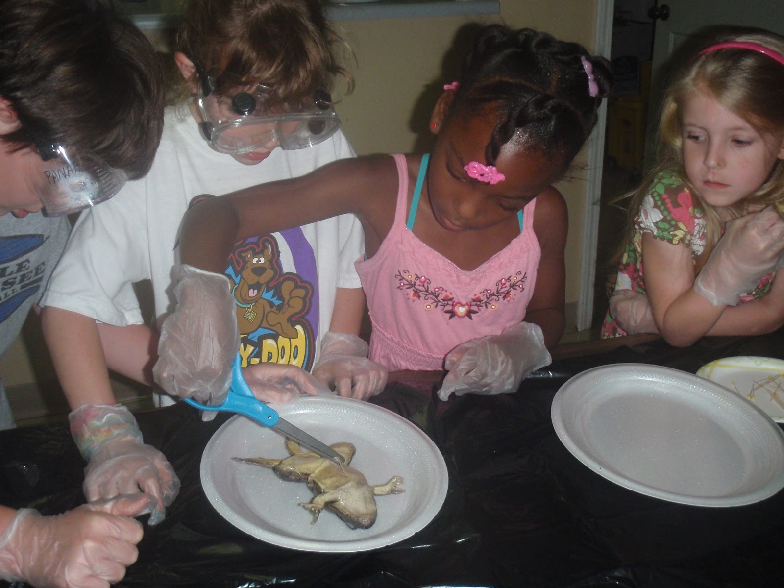 This year we decided to do super science which I am SOOO glad that we did. We didn’t get to do it last year. It’s a science class for homeschool kids that meets on Wednesday and they do a different science project when they meet. It’s an awesome concept and the science teacher is awesome! So often I get blank stares and weird stares when I say I homeschool my children. People have so many opinions and I often here things like don’t they need socialization. Well this past week for all those skeptics I say to them, how many 2nd graders get to dissect a frog……. HA! That’s exactly what we did at super science Bossy got to dissect her very first frog, and she LOVED it. When I say loved, I mean LOVED in all CAPS! She dived in head first and got to work. Many of the parents were amazed at how she wasn’t grossed out about the smell or taking out the organs. Once she was done dissecting the frog, she says to me “I’m hungry, you want to get something to eat?” My mouth dropped open I’m thinking you want to eat after doing this!?! She proudly told me that she wants to be an operator surgeon. She said we needed to put those organs back into the frog, that’s what I want to do. Her daddy said, she will probably be a corner working in her own morgue. I thought thanks honey for that! No matter what she decides to do with her life I am so glad that she gets to experience so many things that many kids do not and sadly will not!