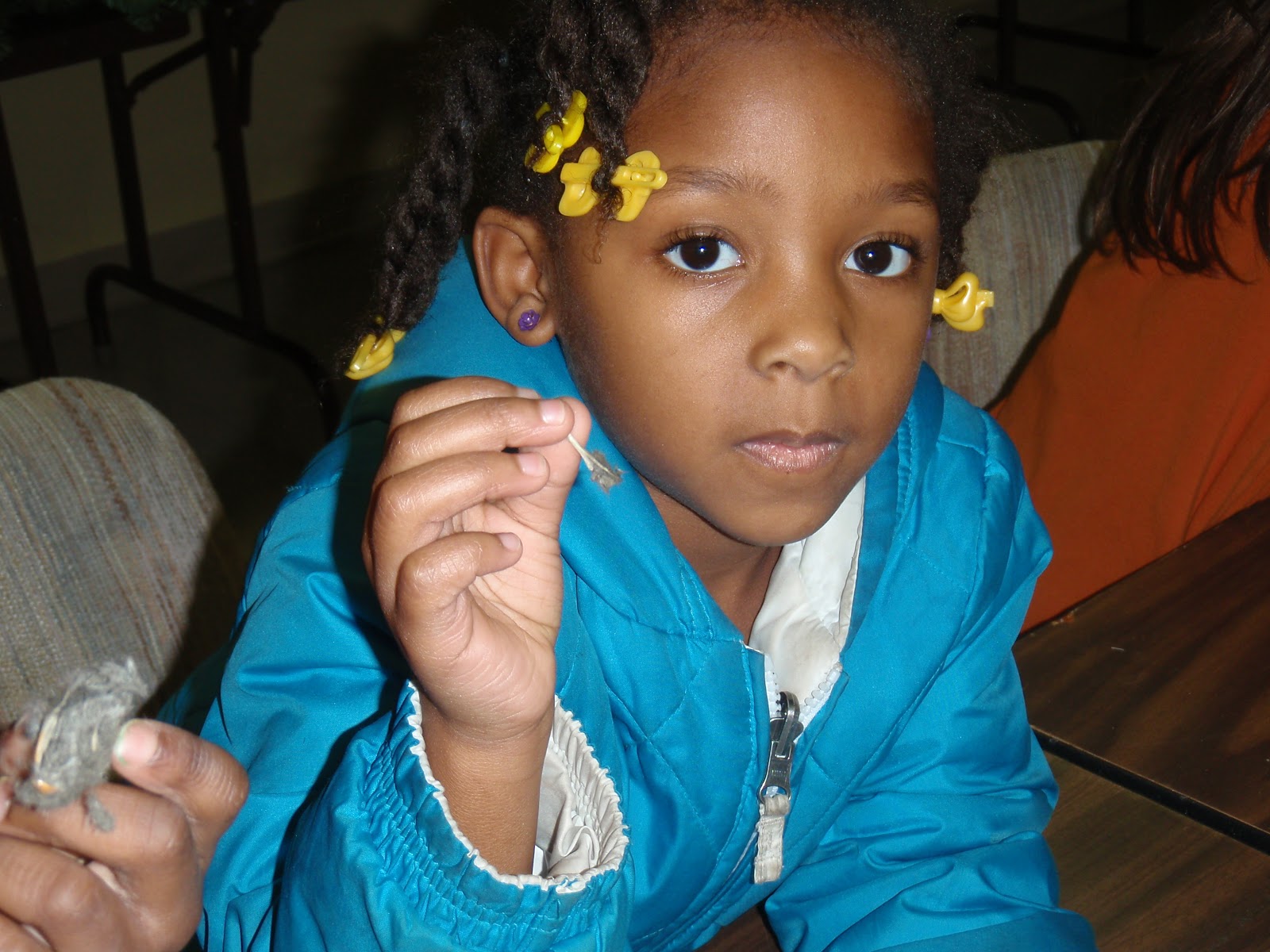 Holding up her Owl Pellet