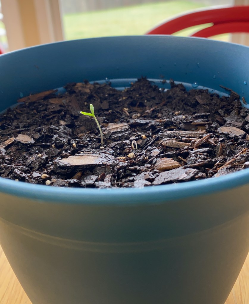 A week later, she proudly told me the seeds were sprouting. I happily asked her, “you are seeing them sprout through the dirt?” She replied, “nope I dug them up.” A few days later, a beautiful little seedling started peaking through the dirt.