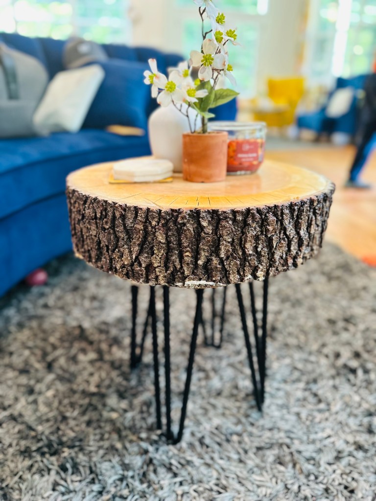 I received one of the best gifts from my husband and children. A side table they built from the bark of this tree. I was amazed and thrilled as I took in the beauty of the tree that is now my side table. I could see the tree smiling in the tree’s rings as it whispered, I am now a family heirloom, a treasure that will live for generations and generations to come. I will travel places, see things, and carry secrets and stories I would have never seen or heard as a tree. My heart is filled with love. As I enjoy my morning cup of coffee and sit next to this table, I will be reminded there is beauty and newness in being uprooted and even falling. We can reinvent ourselves into something greater and more powerful than we ever imagined. Allowing ourselves to surrender and let the universe take us where we need to go opens the door to possibilities we never knew existed.